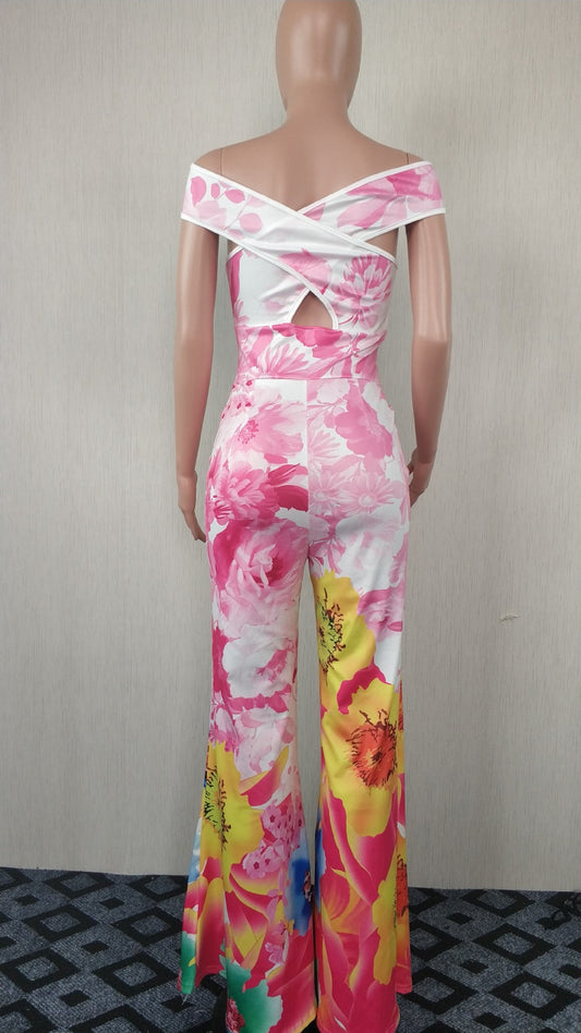 Plus Size Women's Sleeveless Sexy Tie-dye Print Hollow Wide-leg EBay Jumpsuit